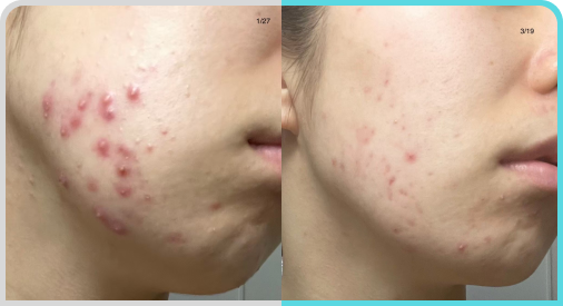 この期間でお肌が一皮も二皮も新しくなって、顎ニキビだけでなく他の場所でも新しいニキビが本当にできなくなり、驚きでしかありません!